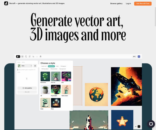 Recraft AI 是一个无限的人工智能画板,用户可以使用其生成和编辑矢量艺术画、图标、3D图像和插画等资源,提供多种样式的可选风格,适合网站、印刷品和网络营销等设计用途。Rrecraft 对所有用户都是免费的,并允许对生成的图像进行商业使用。