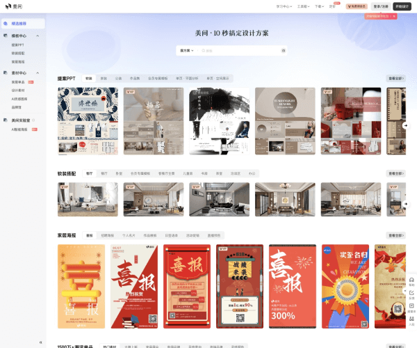 美间是一款AI创意内容云设计工具,由国产3D室内设计软件酷家乐所属公司推出,提供海量方案模板和快速设计工具,为平面设计创作者量身打造流畅、高效、美观的创作体验。致力于服务软装设计师,通过海量的设计素材和简单易用的编辑功能,帮助设计师高效、快速地完成软装搭配创作。