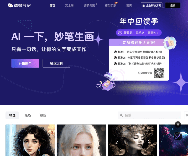 1. 访问造梦日记的官网,点击开始创作按钮